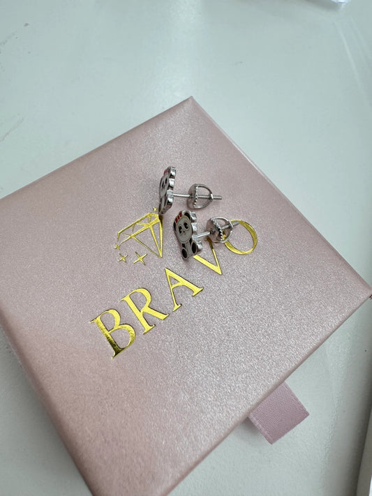 Kids Silver Earrings Panda Screw in lock