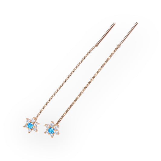 Thread Earrings Blue Flowers