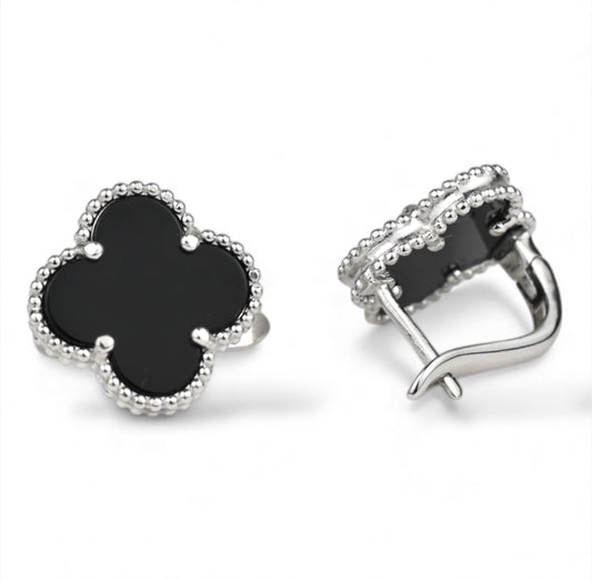 Clover Onyx Silver Earrings