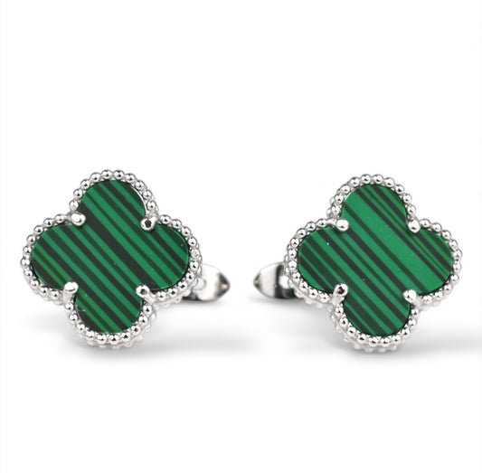 Clover Malachite Silver Earrings