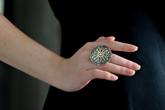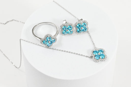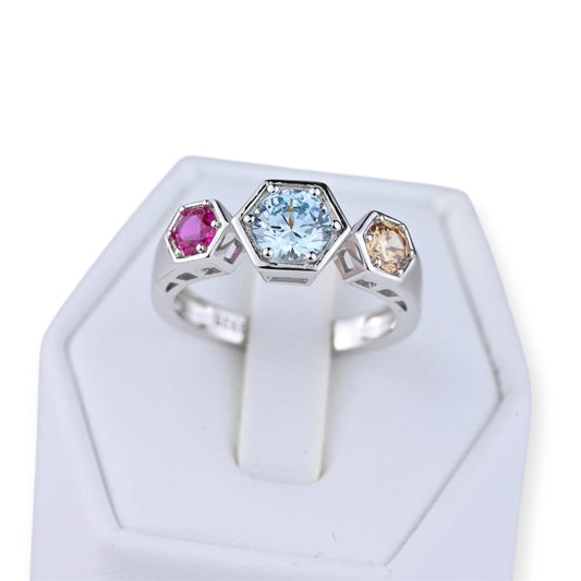 Silver Set Colorful Hexagon Dangle Earrings and Ring