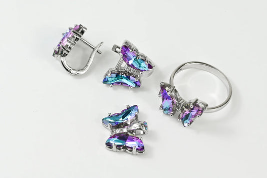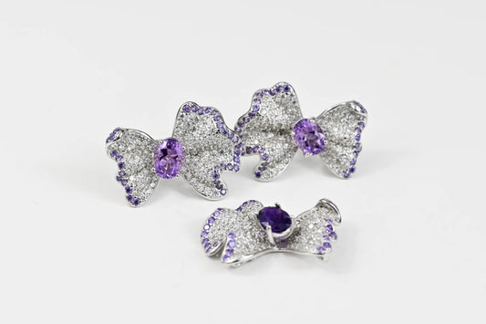 Silver Jewelry Set Purple (Earrings,Pendant)