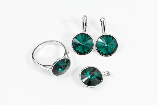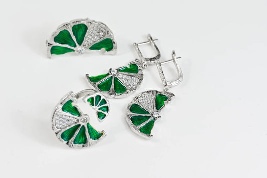 Silver Jewelry Set Lime (Earrings,Ring,Brooch-Pendant)