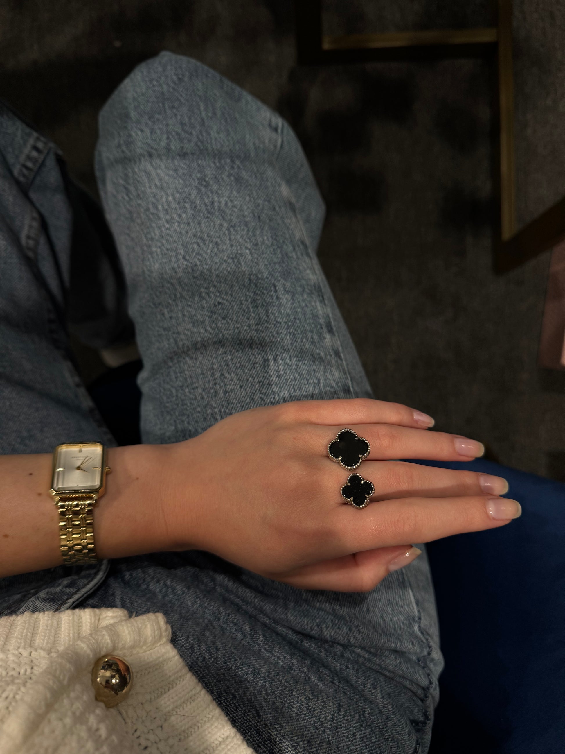 Onyx Silver Ring clover