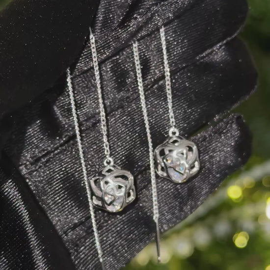 Sparkling Flowers Threads Silver Earrings