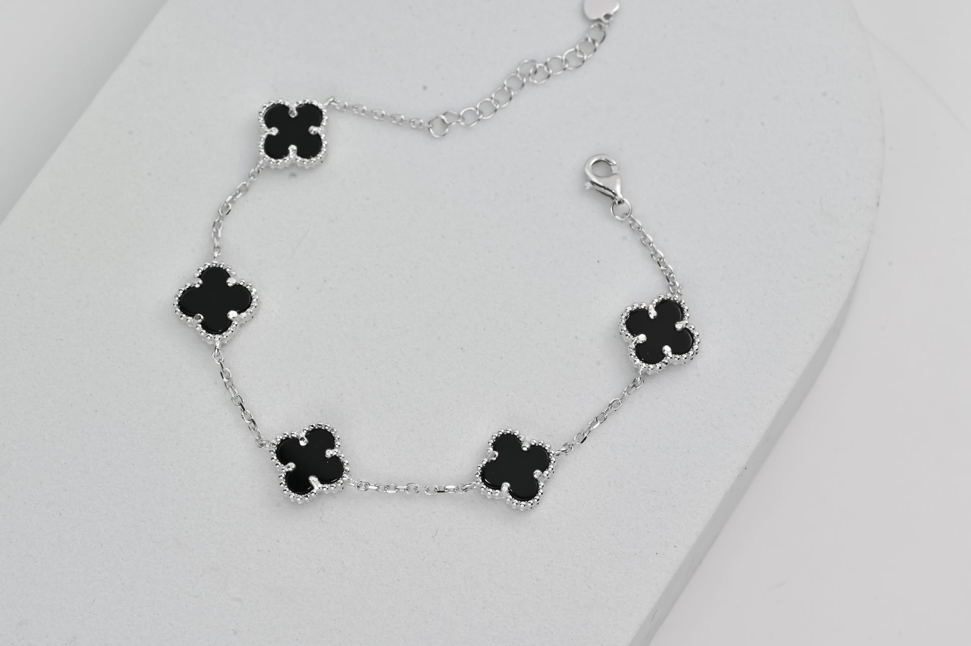 Silver Bracelet Clover Onyx