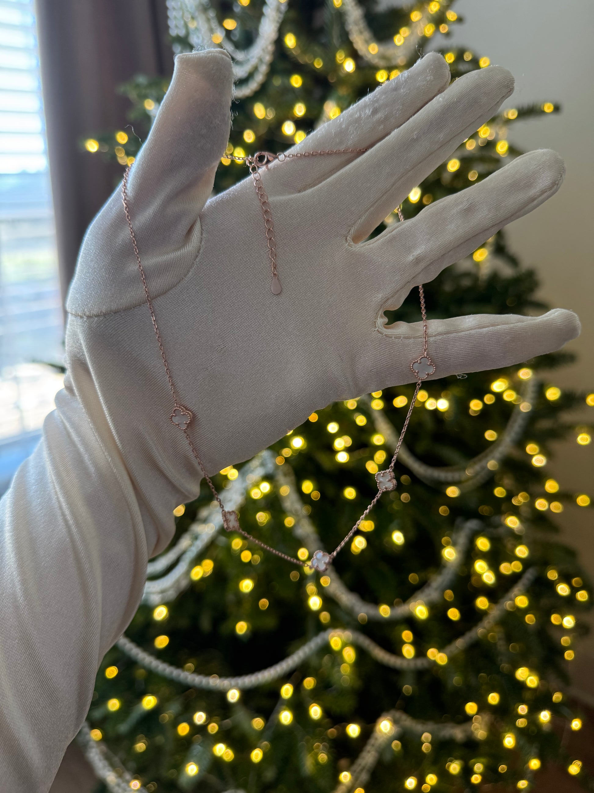 Silver Necklace Clovers Mother of Pearl Gold Plated